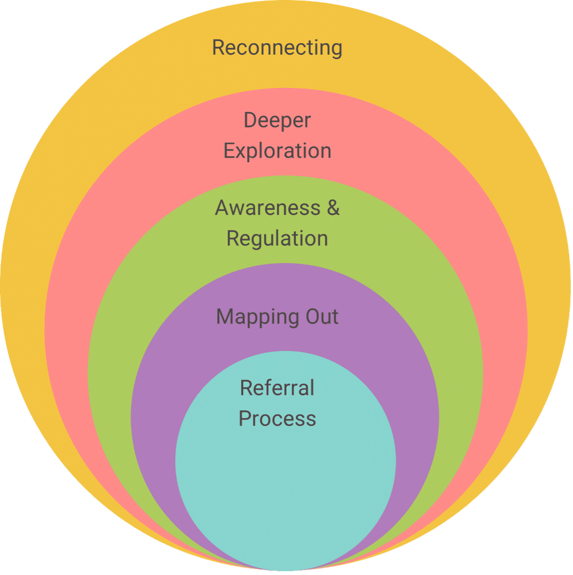 The relationship between client and therapist is at the core of each process and paramount to building resources, and addressing any issues the client chooses to bring.